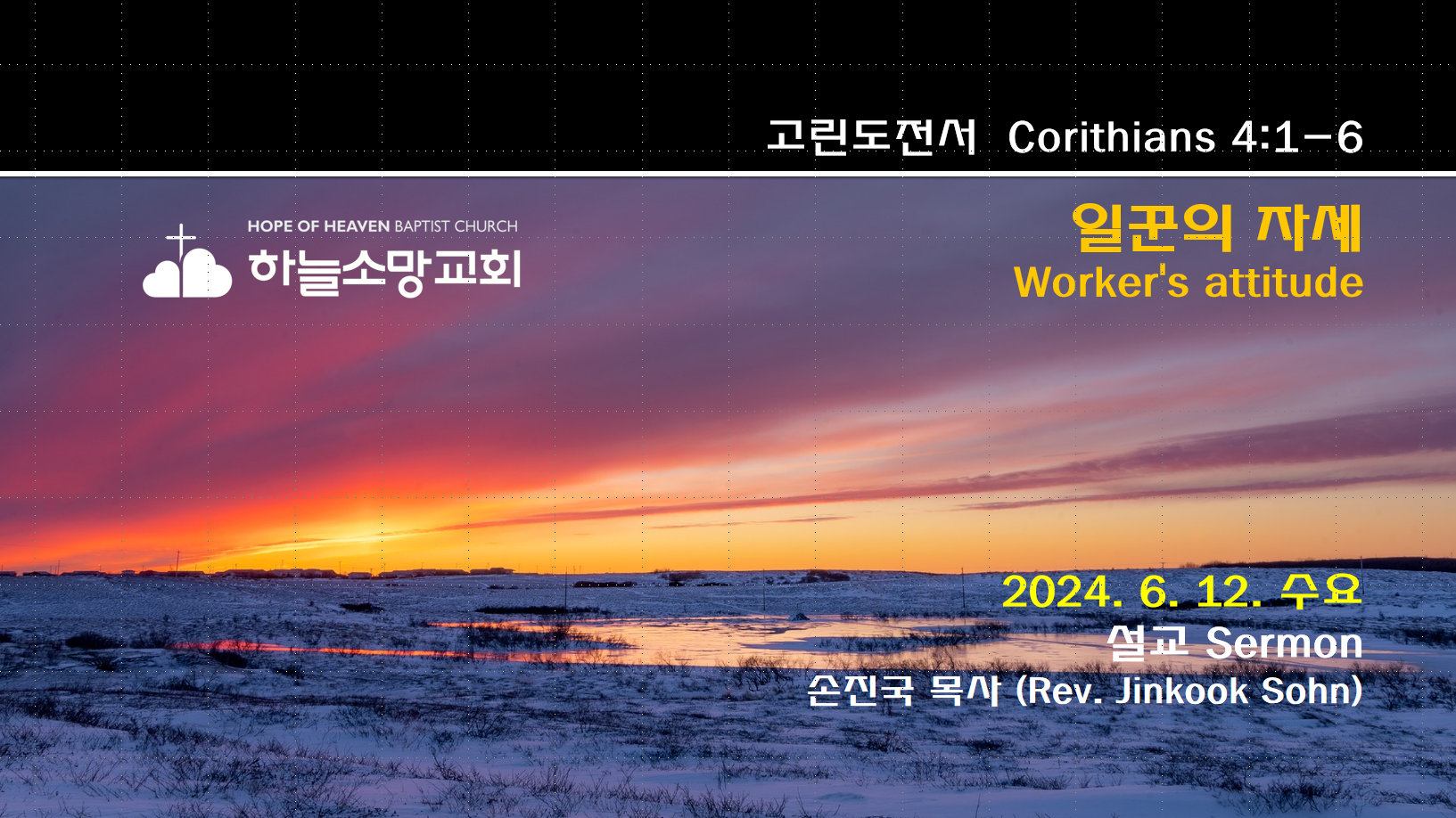 [2024. 6. 12. ] (고전9) 일꾼의 자세 | 고린도전서 4:1-6 2024. 6. 12. 수요예배고린도전서 강해-9 본문: 고린도전서 4:1-6제목: 일꾼의 자세설교자: 손진국 목사 설교 음성 mp3 파일입니다. 하늘소망교회(담임 손진국 목사)는 뉴질랜드 오클랜드 북부 실버데일에 세워진 한인교회로 '하나님의 마음으로 사람을 살리는 교회'입니다. 설교 Sermon/수요예배 Wednesday 2024.06.15