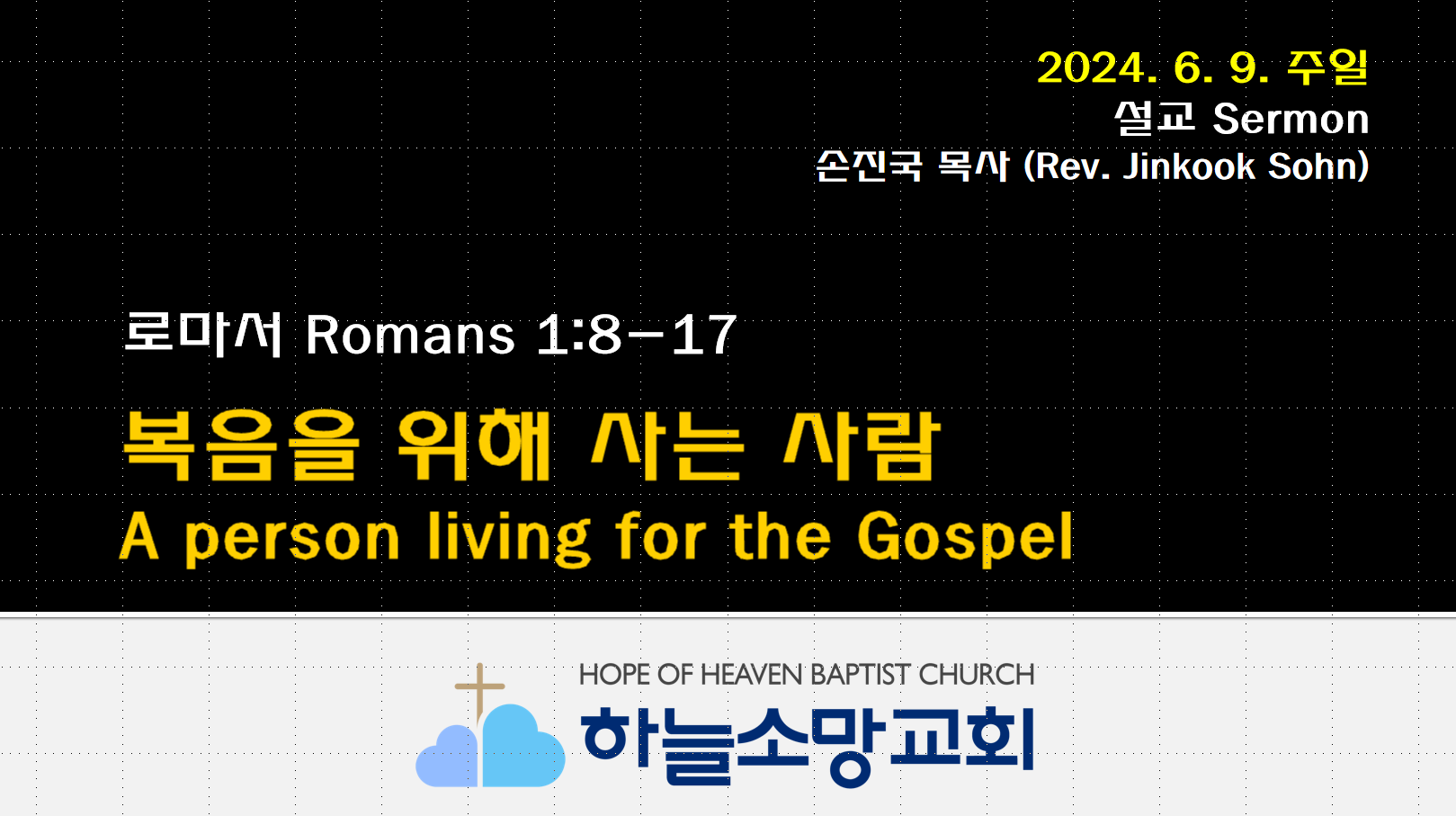 [2024. 6. 9.] (로마서 강해 2) 복음을 위해 사는 사람 | 로마서 1:8-17 2024. 6. 9. 주일예배 설교-로마서 강해 2 본문: 로마서 1:8-17 제목: 복음을 위해 사는 사람 설교자: 손진국 목사 하늘소망교회(담임 손진국 목사)는 뉴질랜드 오클랜드 북부 실버데일에 세워진 한인교회로 '하나님의 마음으로 사람을 살리는 교회'입니다. 설교 Sermon/주일예배 Sunday 2024.06.15