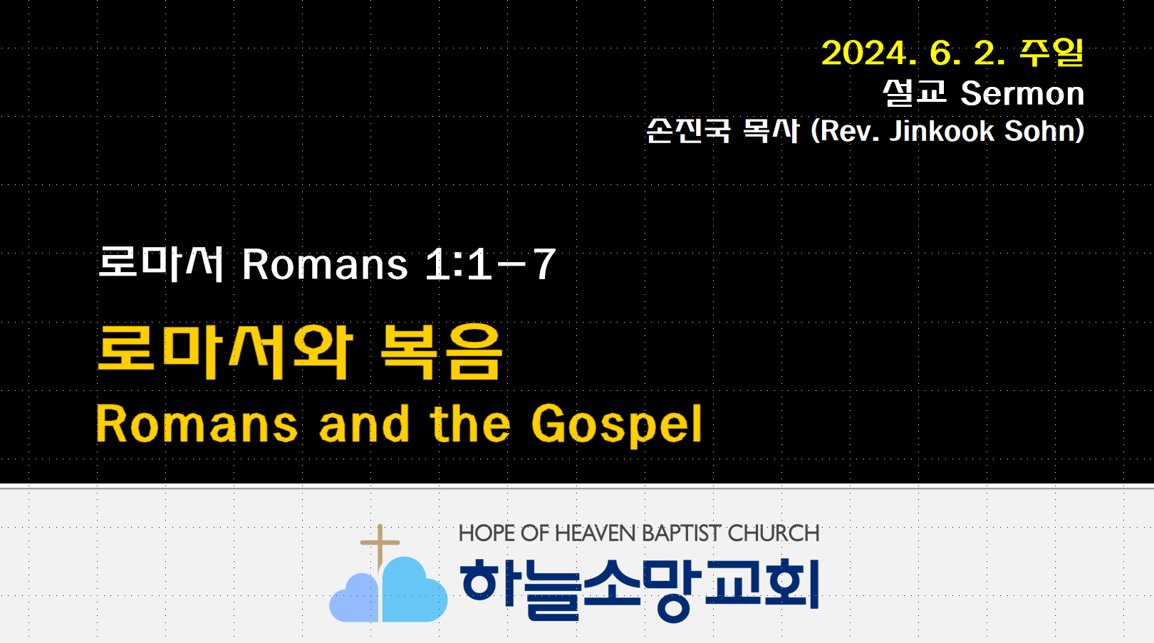 [2024. 6. 2.] (로마서 강해 1) 로마서와 복음 | 로마서 1:1-7 2024. 6. 2. 주일예배 설교-로마서 강해 1본문: 로마서 1:1-7 제목: 로마서와 복음 설교자: 손진국 목사 하늘소망교회(담임 손진국 목사)는 뉴질랜드 오클랜드 북부 실버데일에 세워진 한인교회로 '하나님의 마음으로 사람을 살리는 교회'입니다. 설교 Sermon/주일예배 Sunday 2024.06.15
