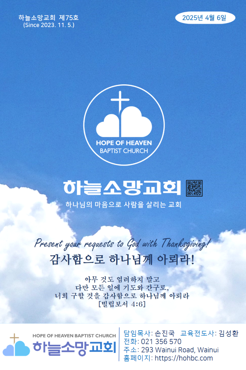 [English Sermon 영어 설교]Sunday, April 6, 2025 - Sermon by Rev. Jinkook (Danny) SohnHeavenly Spiritual Blessings 3: Adoption to Sonship (Eph 1:3-6) 2025. 4. 6. 주일예배 설교- 에베소서 강해 4본문: 에베소서 1:3-6 제목: 하늘에 속한 신령한 복3-양자됨설교자: 손진국 목사 Hallelujah! I’m happy to see you all. First, I would like to proclaim our faith. When I say something, please respond with "Amen." Jesus is my Lord. Jesus is the head of our ..