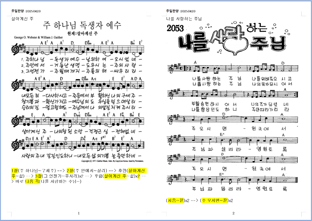 2025. 4. 20. 하늘소망교회 부활주일예배 찬양 콘티