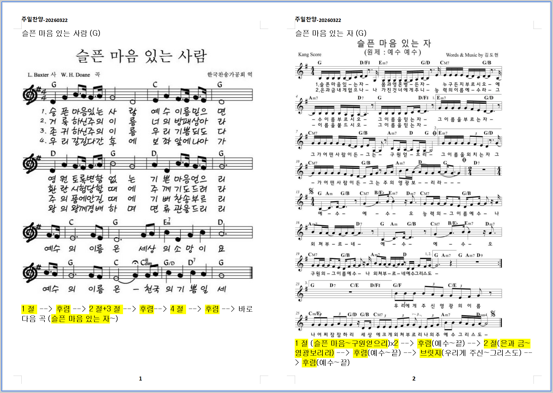 2026. 3. 22. 하늘소망교회 주일예배 찬양 콘티1. 슬픈 마음 있는 사람 (G)2. 슬픈 마음 있는 자 (G)3. 푯대를 향하여 (G)4. 나는 예배자 입니다 (G)5. 찬송가 - 내 영혼에 햇빛 비치니 (새428장, 통88장)6. [축복송] 하나님의 사랑이 (F)7. [결단찬양] 슬픈 마음 있는 자 (G) Hope of Heaven Baptist Church 하늘소망교회(담임 손진국 목사)는 뉴질랜드 오클랜드 북부 실버데일에 세워진 한인교회로 '하나님의 마음으로 사람을 살리는 교회'입니다.