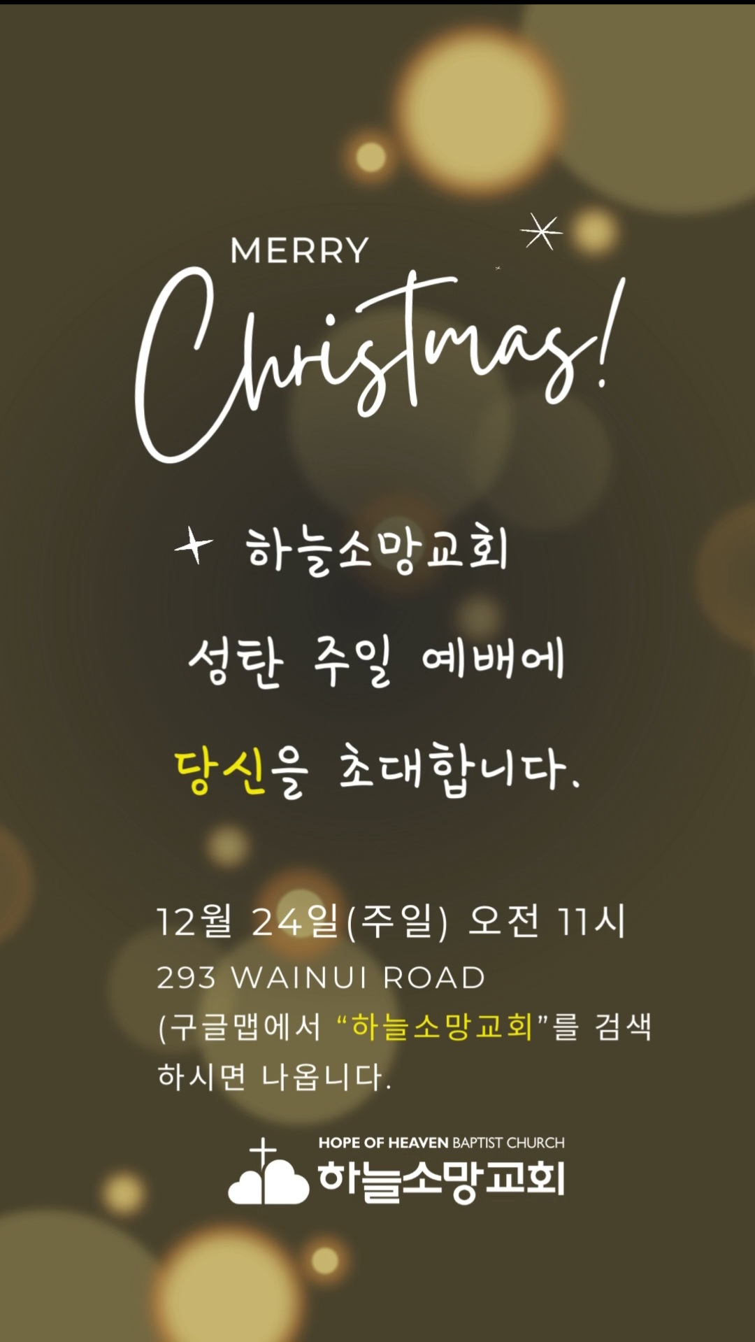 성탄주일 아기 예수님 탄생을 축하드리며 생일선물을 드렸습니다.주님께서 정말 기쁘게 받으셨음을 믿습니다. 할렐루야!!! 기타 연주: "천사들의 노래가" by 김준 학생플룻연주: "기쁘다 구주 오셨네, 노엘" by 김솔 박하윤 어린이율동: "마라나타 캐롤" by 김솔 박새봄 박하윤 어린이 하늘소망교회(담임 손진국 목사)는 뉴질랜드 오클랜드 북부 실버데일에 세워진 한인교회로 '하나님의 마음으로 사람을 살리는 교회'입니다.