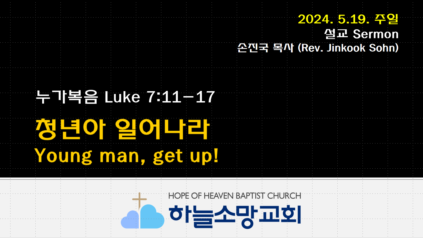 [2024. 5. 19.] 청년아 일어나라 | 누가복음 7:11-17 2024. 5. 19. 주일예배 본문: 누가복음 7:11-17 제목: 청년아 일어나라 설교자: 손진국 목사 하늘소망교회(담임 손진국 목사)는 뉴질랜드 오클랜드 북부 실버데일에 세워진 한인교회로 '하나님의 마음으로 사람을 살리는 교회'입니다. 설교 Sermon/주일예배 Sunday 2024.06.15