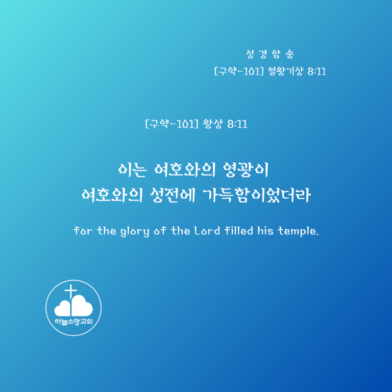 [구약] 성경암송 101-110 구약성경 성경암송구절 101-110 하늘소망교회(담임 손진국 목사)는 뉴질랜드 오클랜드 북부 실버데일에 세워진 한인교회로 '하나님의 마음으로 사람을 살리는 교회'입니다. 양육 Nurture/성경암송 Bible Memory 2025.04.28