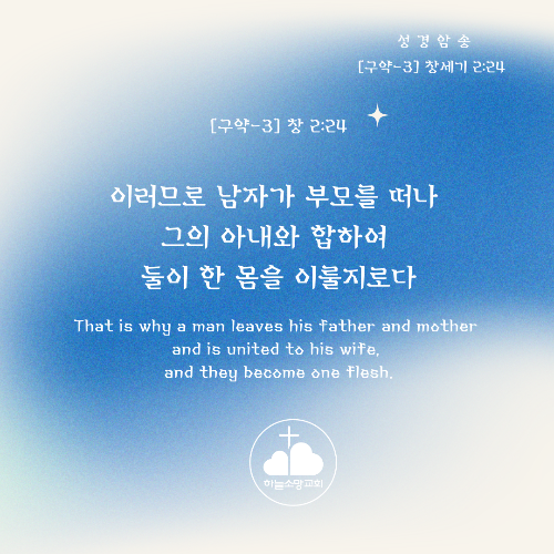 [ 구약- 3] 창 2:24 이러므로 남자가 부모를 떠나 그의 아내와 합하여 둘이 한 몸을 이룰지로다