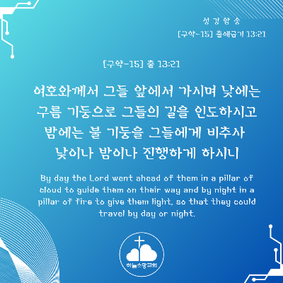 [ 구약- 15] 출 13:21 여호와께서 그들 앞에서 가시며 낮에는 구름 기둥으로 그들의 길을 인도하시고 밤에는 불 기둥을 그들에게 비추사 낮이나 밤이나 진행하게 하시니