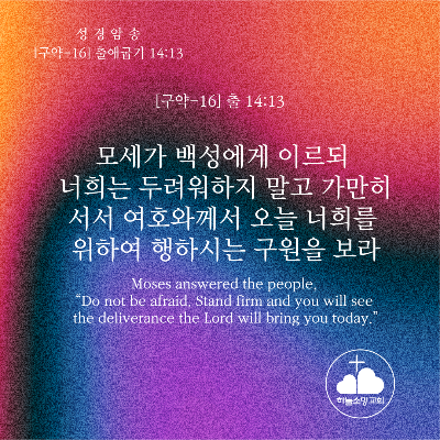 [ 구약- 16] 출 14:13 모세가 백성에게 이르되 너희는 두려워하지 말고 가만히 서서 여호와께서 오늘 너희를 위하여 행하시는 구원을 보라