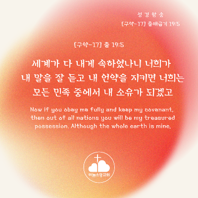 [ 구약- 17] 출 19:5 세계가 다 내게 속하였나니 너희가 내 말을 잘 듣고 내 언약을 지키면 너희는 모든 민족 중에서 내 소유가 되겠고