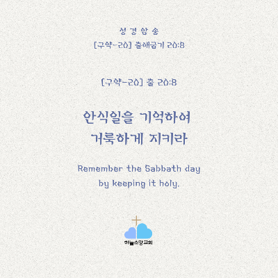 [ 구약- 20] 출 20:8 안식일을 기억하여 거룩하게 지키라