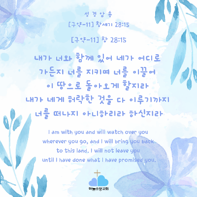 [구약-11] 창 28:15 내가 너와 함께 있어 네가 어디로 가든지 너를 지키며 너를 이끌어 이 땅으로 돌아오게 할지라 내가 네게 허락한 것을 다 이루기까지 너를 떠나지 아니하리라 하신지라