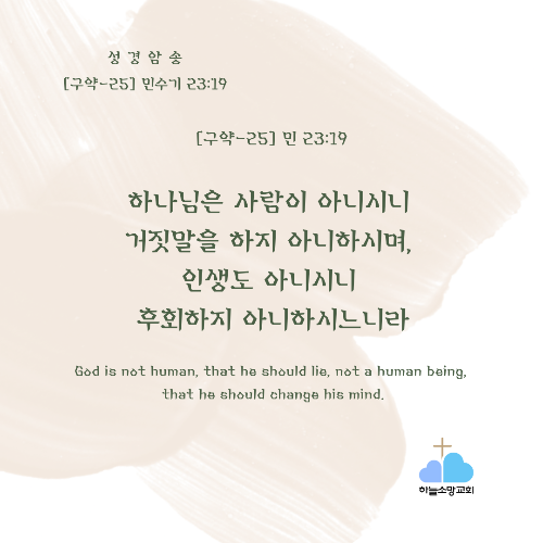 [구약-25] 민 23:19 하나님은 사람이 아니시니 거짓말을 하지 않으시고 인생이 아니시니 후회가 없으시도다