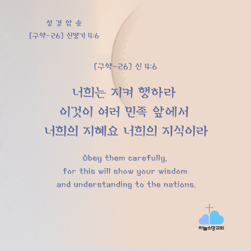[구약-26] 신 4:6 너희는 지켜 행하라 이것이 여러 민족 앞에서 너희의 지혜요 너희의 지식이라