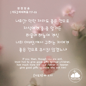 11 너희가 악한 자라도 좋은 것으로 자식에게 줄 줄 알거든 하물며 하늘에 계신 너희 아버지께서 구하는 자에게 좋은 것으로 주시지 않겠느냐
