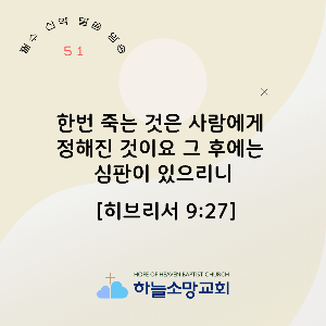 [신약 51] 히 9:27 한 번 죽는 것은 사람에게 정해진 것이요 그 후에는 심판이 있으리니