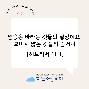 [신약 52] 히 11:1 믿음은 바라는 것들의 실상이요 보이지 않는 것들의 증거니