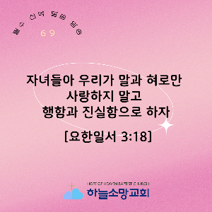 [신약 69] 요일 3:18 자녀들아 우리가 말과 혀로만 사랑하지 말고 행함과 진실함으로 하자