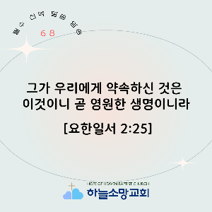 [신약 68] 요일 2:25 그가 우리에게 약속하신 것은 이것이니 곧 영원한 생명이니라