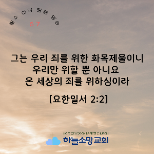 [신약 67] 요일 2:2 그는 우리 죄를 위한 화목제물이니 우리만 위할 뿐 아니요 온 세상의 죄를 위하심이라