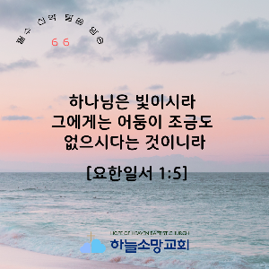 [신약 66] 요일 1:5 우리가 그에게서 듣고 너희에게 전하는 소식은 이것이니 곧 하나님은 빛이시라 그에게는 어둠이 조금도 없으시다는 것이니라