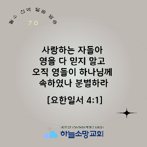 [신약 70] 요일 4:1 사랑하는 자들아 영을 다 믿지 말고 오직 영들이 하나님께 속하였나 분별하라