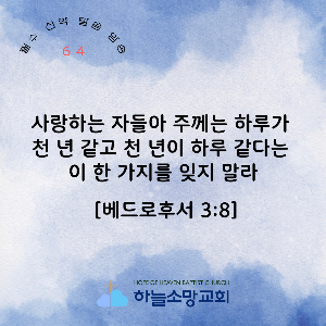 [신약 64] 벧후 3:8 사랑하는 자들아 주께는 하루가 천 년 같고 천 년이 하루 같다는 이 한 가지를 잊지 말라