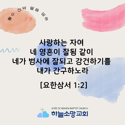 [신약 77] 요한삼서 1:2 사랑하는 자여 네 영혼이 잘됨 같이 네가 범사에 잘되고 강건하기를 내가 간구하노라