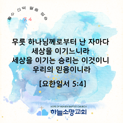 [신약 74] 요한일서 5:4 무릇 하나님께로부터 난 자마다 세상을 이기느니라 세상을 이기는 승리는 이것이니 우리의 믿음이니라