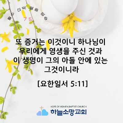 [신약 75] 요한일서 5:11 또 증거는 이것이니 하나님이 우리에게 영생을 주신 것과 이 생명이 그의 아들 안에 있는 그것이니라
