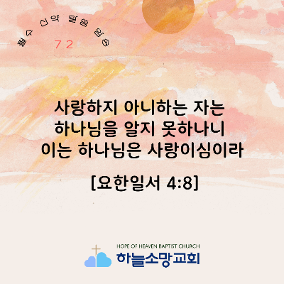 [신약 72] 요한일서 4:8 사랑하지 아니하는 자는 하나님을 알지 못하나니 이는 하나님은 사랑이심이라