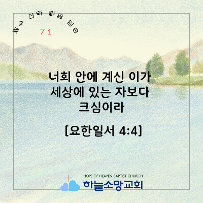 [신약 71] 요한일서 4:4 너희 안에 계신 이가 세상에 있는 자보다 크심이라