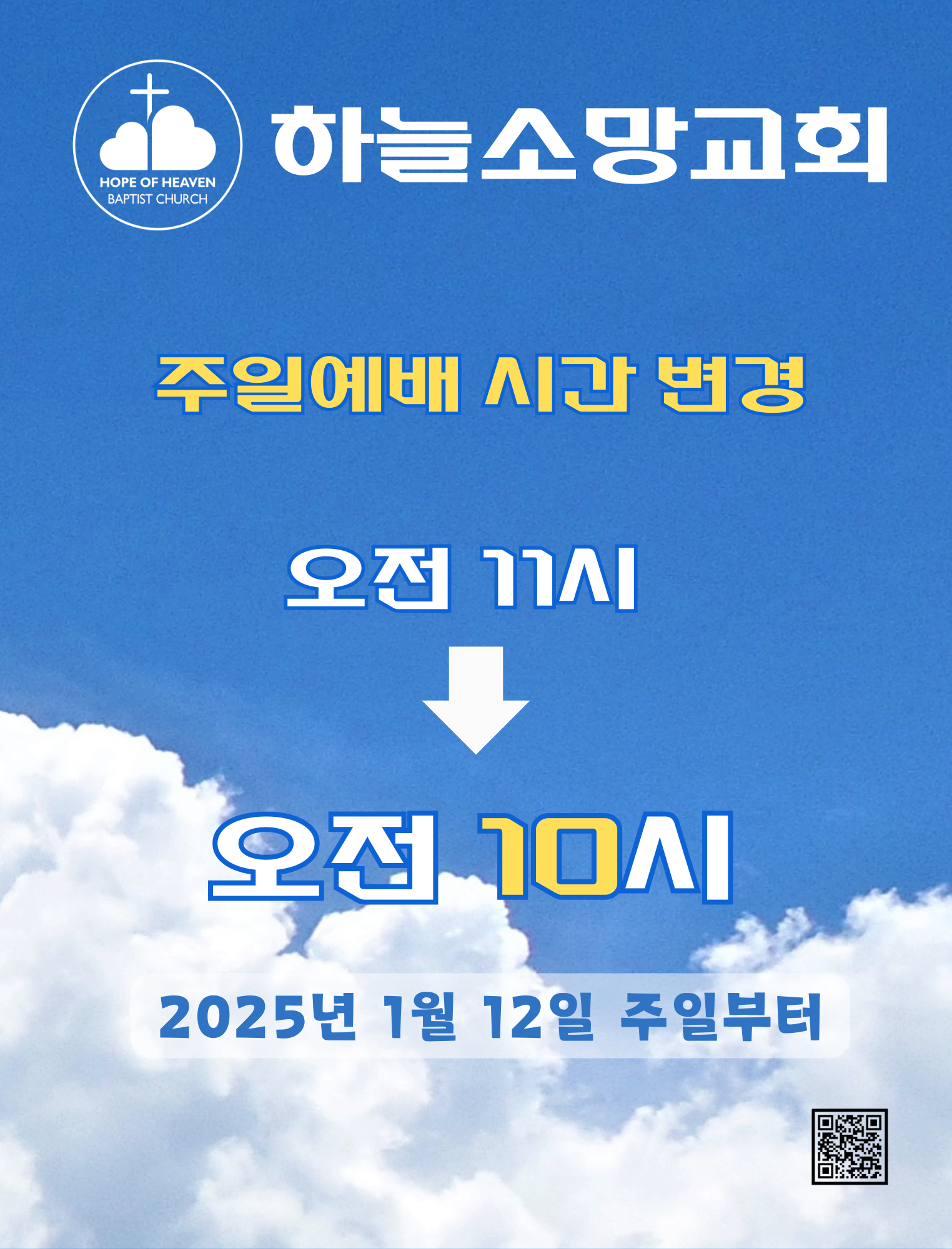 하늘소망교회 주일예배 시간 변경 안내