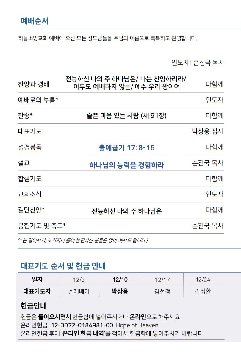 하늘소망교회 제 6호 주보
