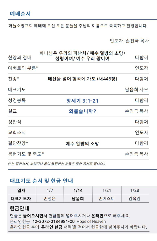 하늘소망교회 제 11호 주보