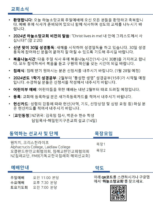 하늘소망교회(담임 손진국 목사)는 뉴질랜드 오클랜드 북부 실버데일에 세워진 한인교회로