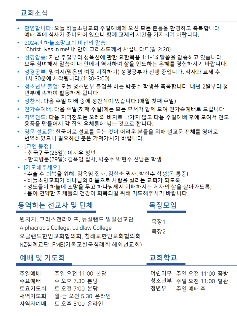 Hope of Heaven Baptist Church 하늘소망교회(담임 손진국 목사)는 뉴질랜드 오클랜드 북부 실버데일에 세워진 한인교회로 '하나님의 마음으로 사람을 살리는 교회'입니다.