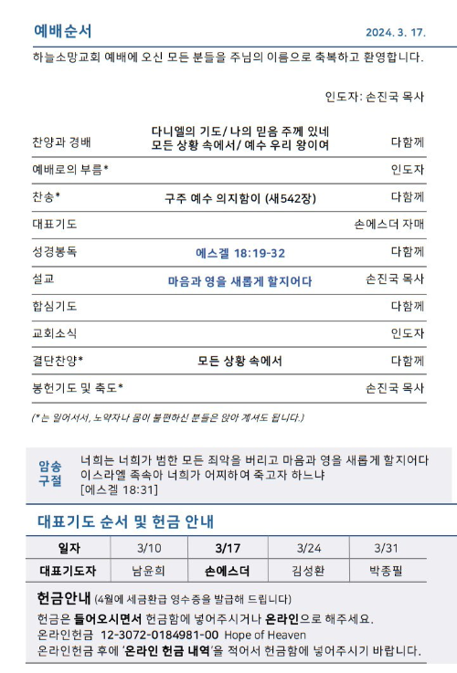 하늘소망교회 제 20호 주보