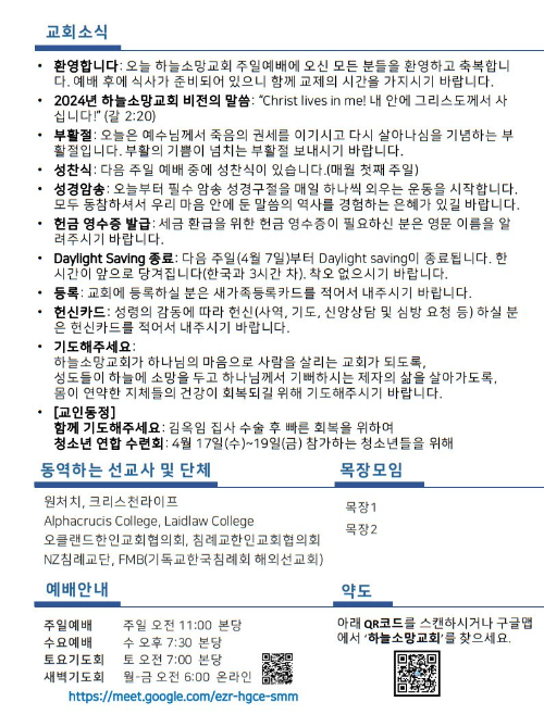 하늘소망교회(담임 손진국 목사)는 뉴질랜드 오클랜드 북부 실버데일에 세워진 한인교회로 '하나님의 마음으로 사람을 살리는 교회'입니다.