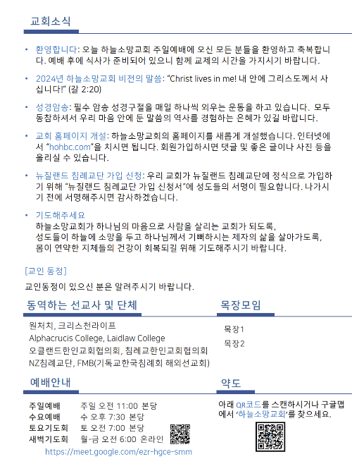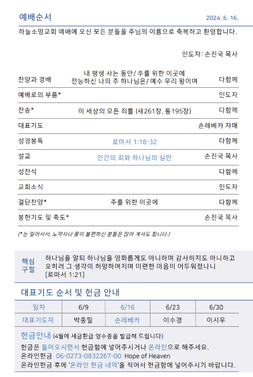 하늘소망교회 제 33호 주보