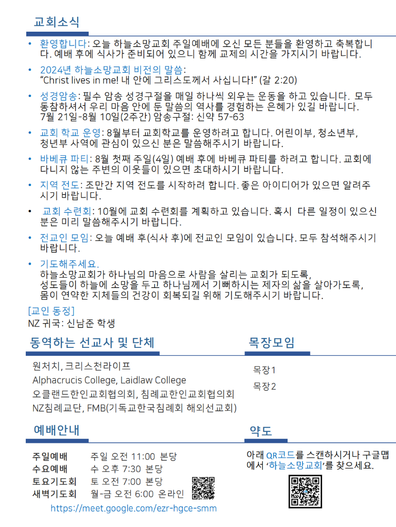 Hope of Heaven Baptist Church 하늘소망교회(담임 손진국 목사)는 뉴질랜드 오클랜드 북부 실버데일에 세워진 한인교회로 '하나님의 마음으로 사람을 살리는 교회'입니다.