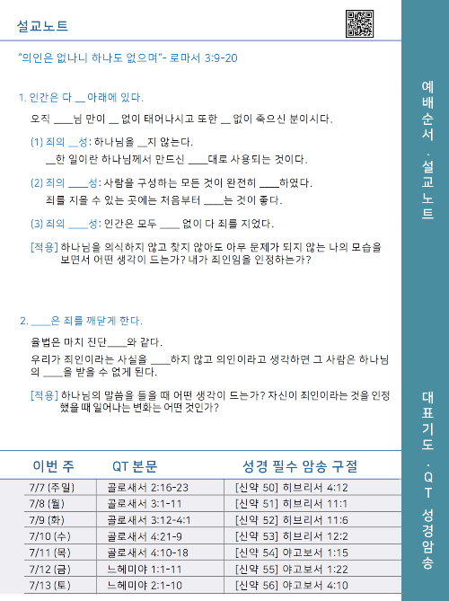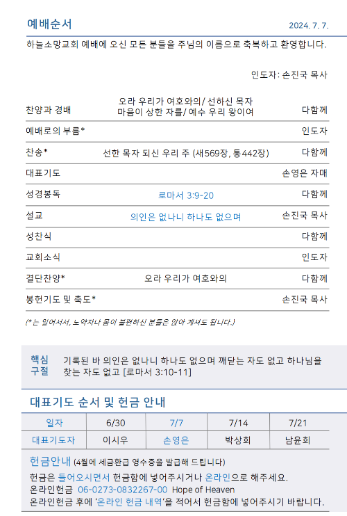 2024년 7월 7일 하늘소망교회 제 36호 주보