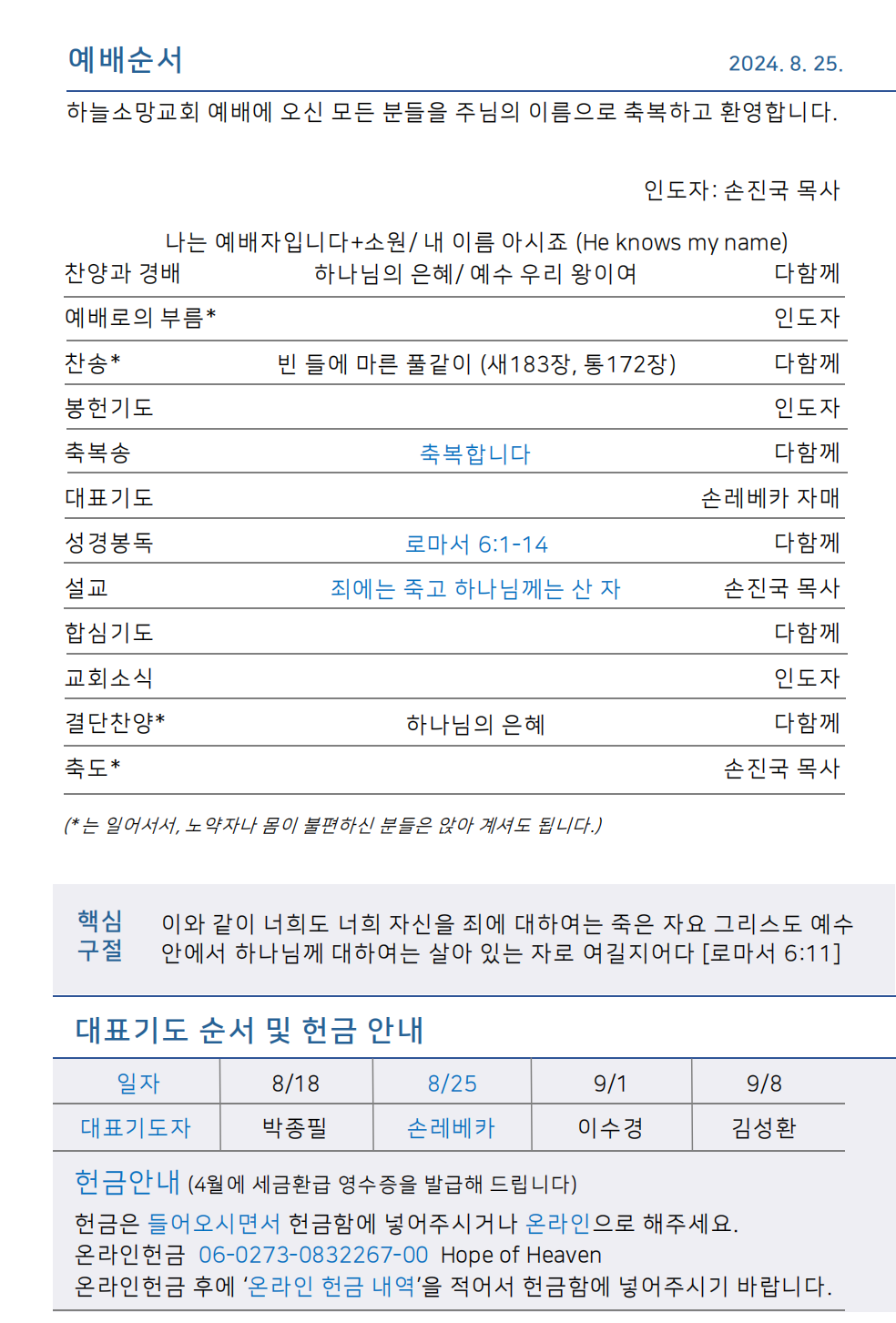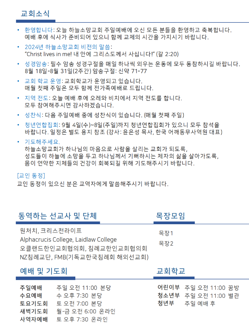 하늘소망교회 제 43호 주보
