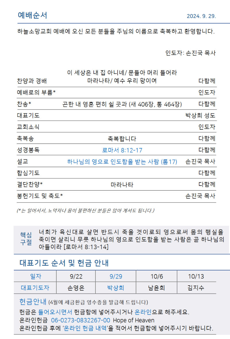 하늘소망교회 제 48호 주보