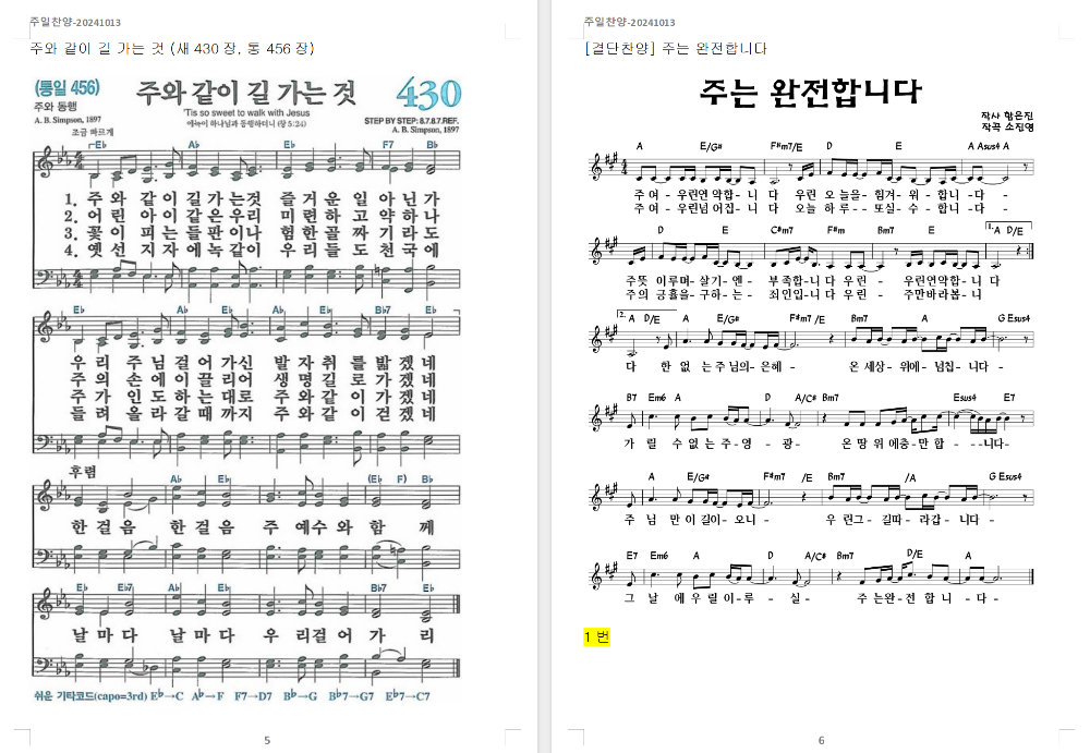 5. 찬송가 - 주와 같이 길 가는 것 (새430장, 통 456장)