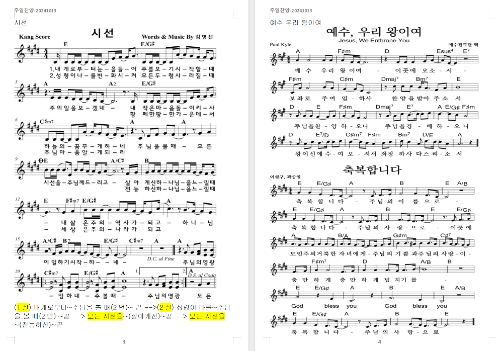사역 Works/찬양콘티 Praise setlist