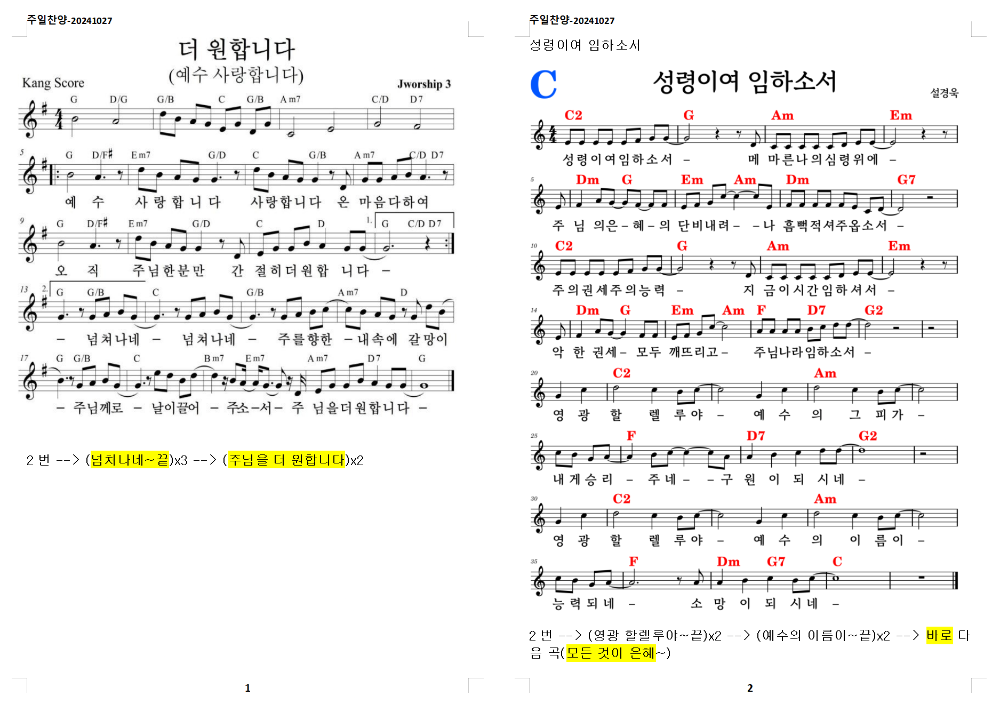 1. 예수 사랑합니다 (더 원합니다) (G코드)