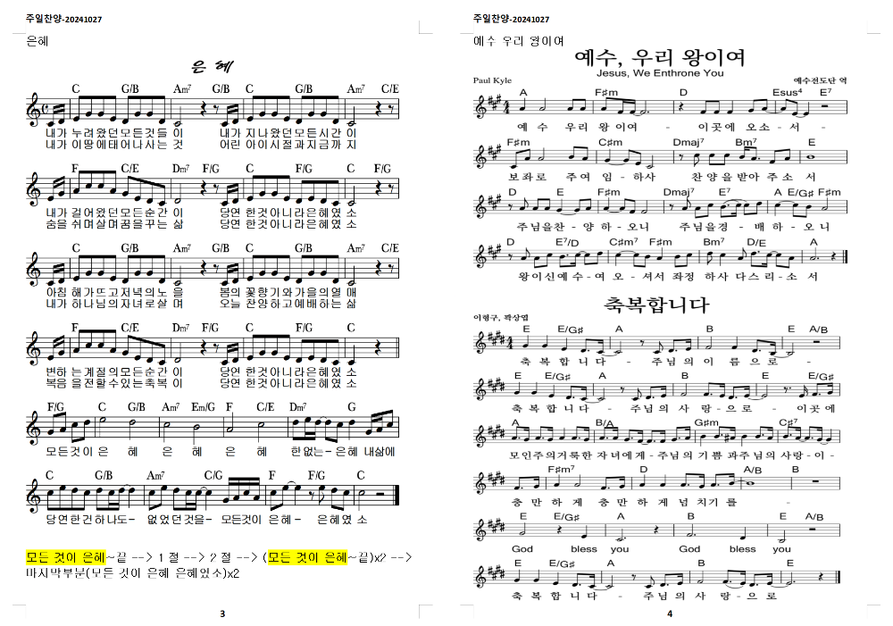 2024. 10. 27. 하늘소망교회 주일찬양 콘티