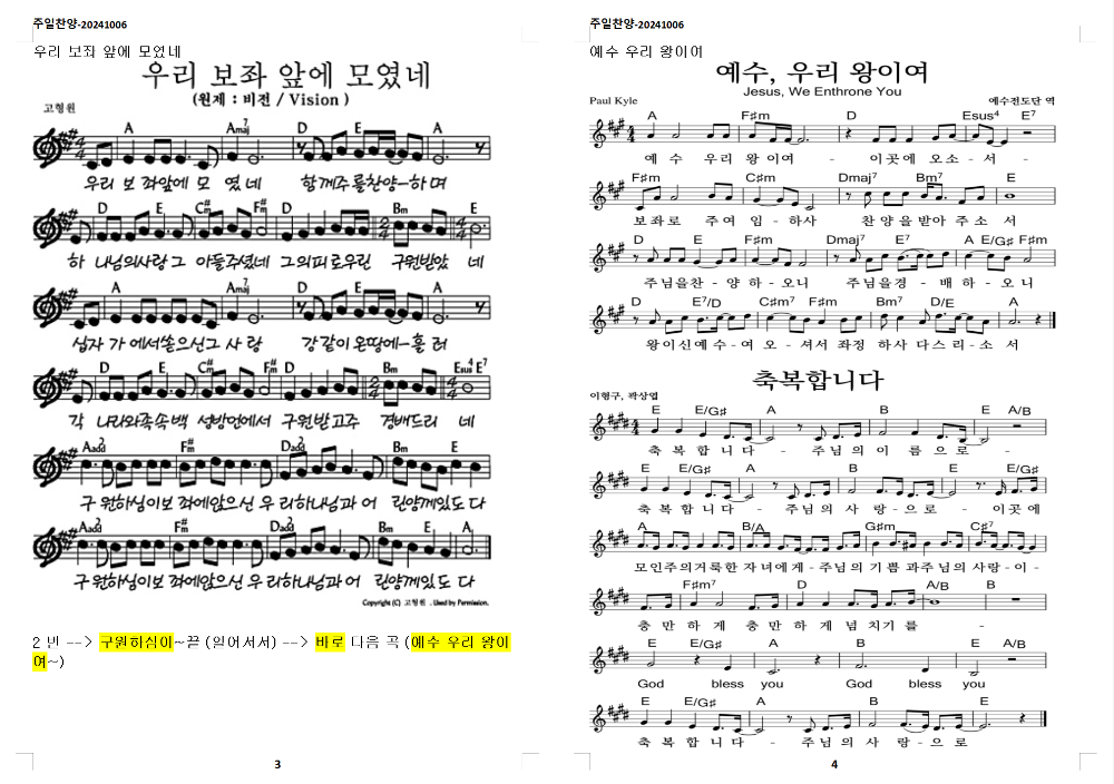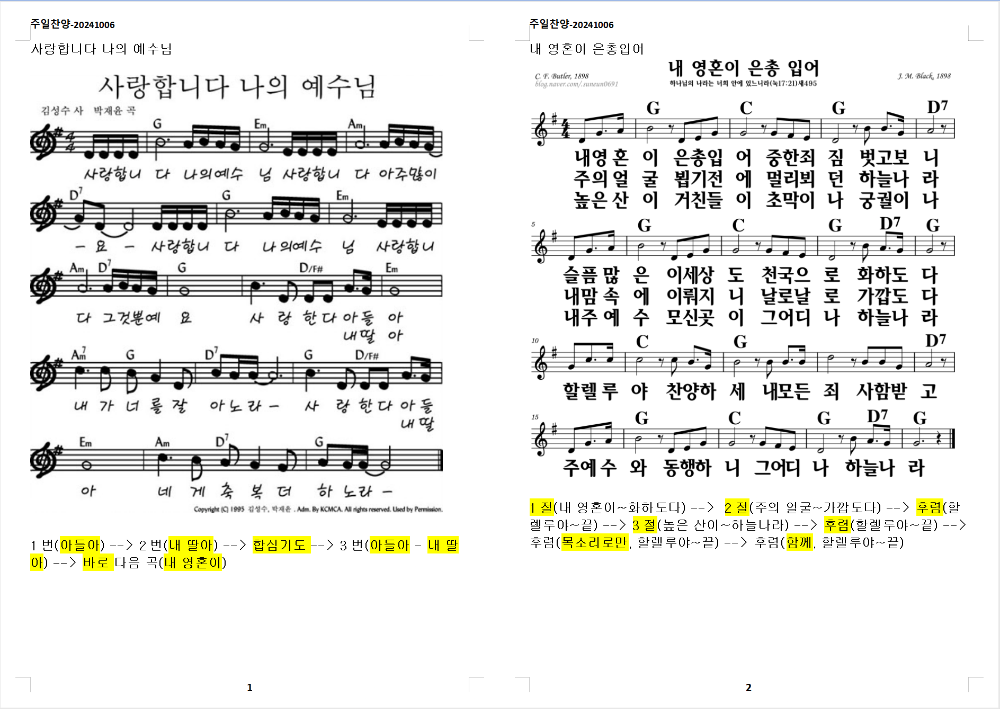2024. 10. 6. 하늘소망교회 주일찬양 콘티