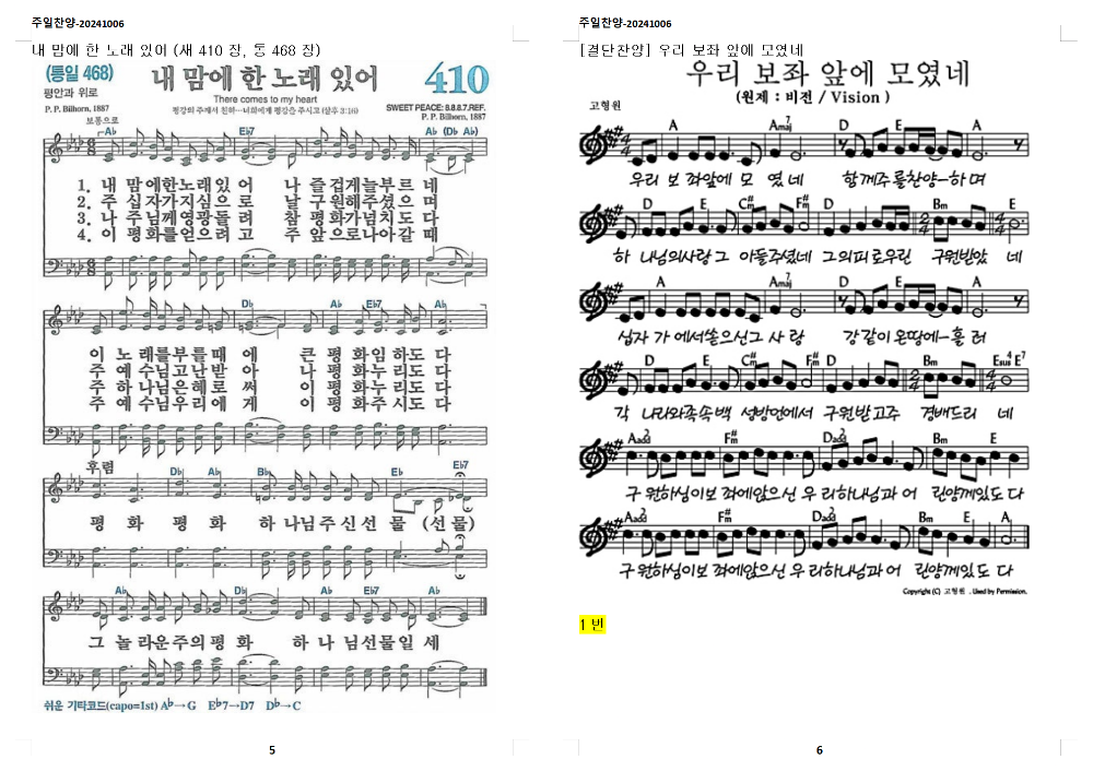 5. 찬송가 - 내 맘에 한 노래 있어 (새 410장, 통 468장)