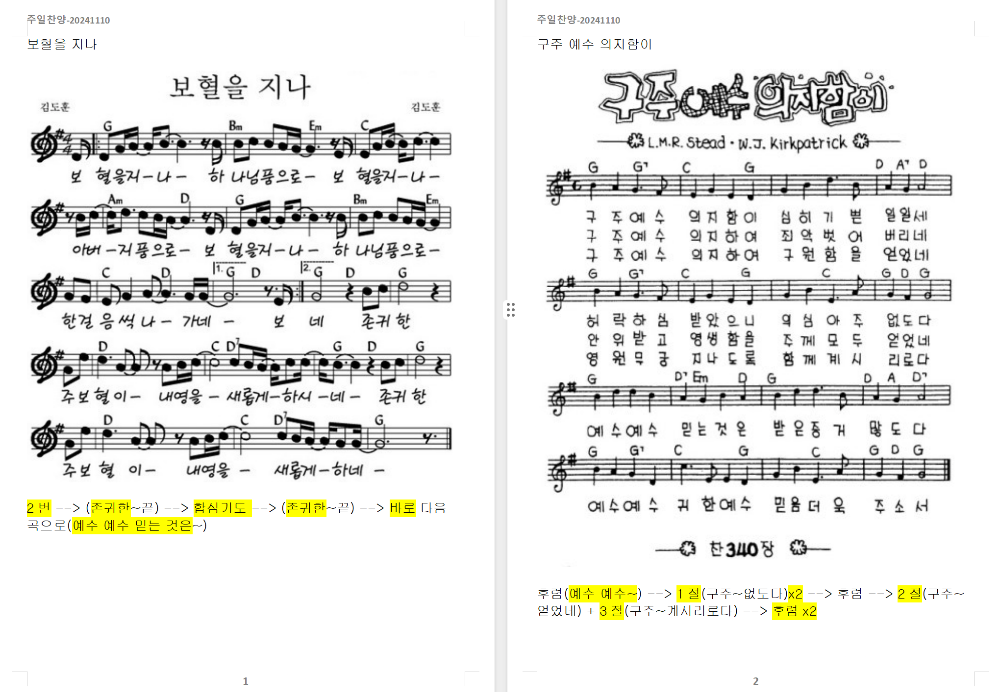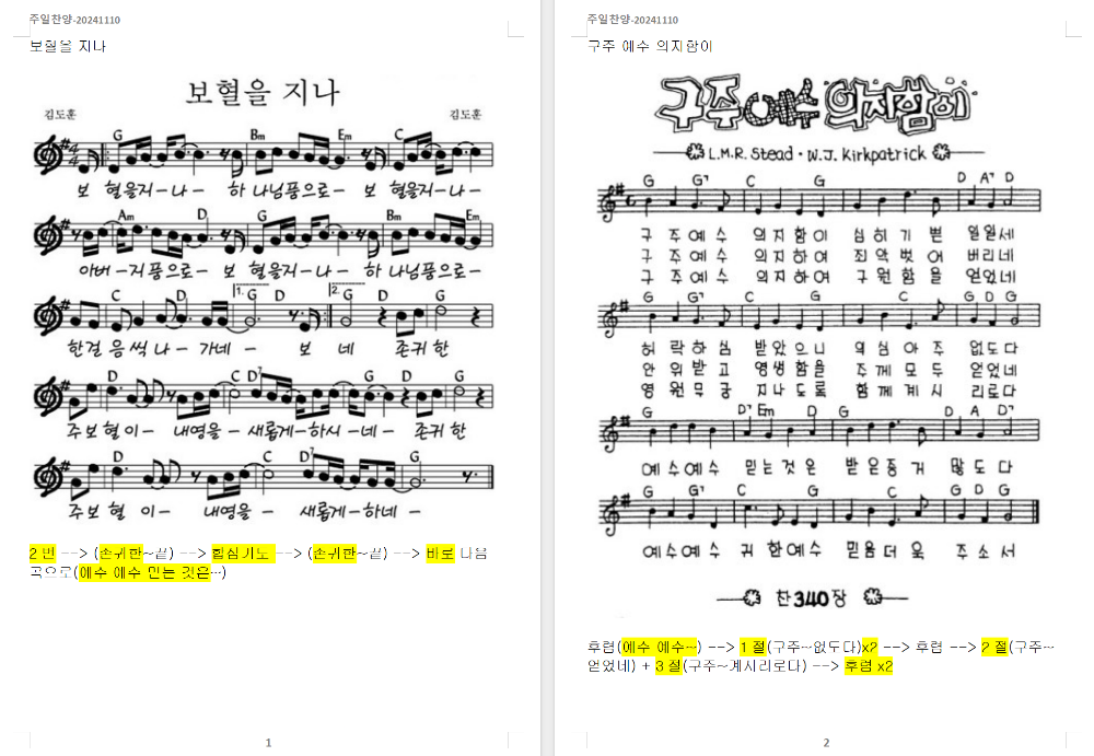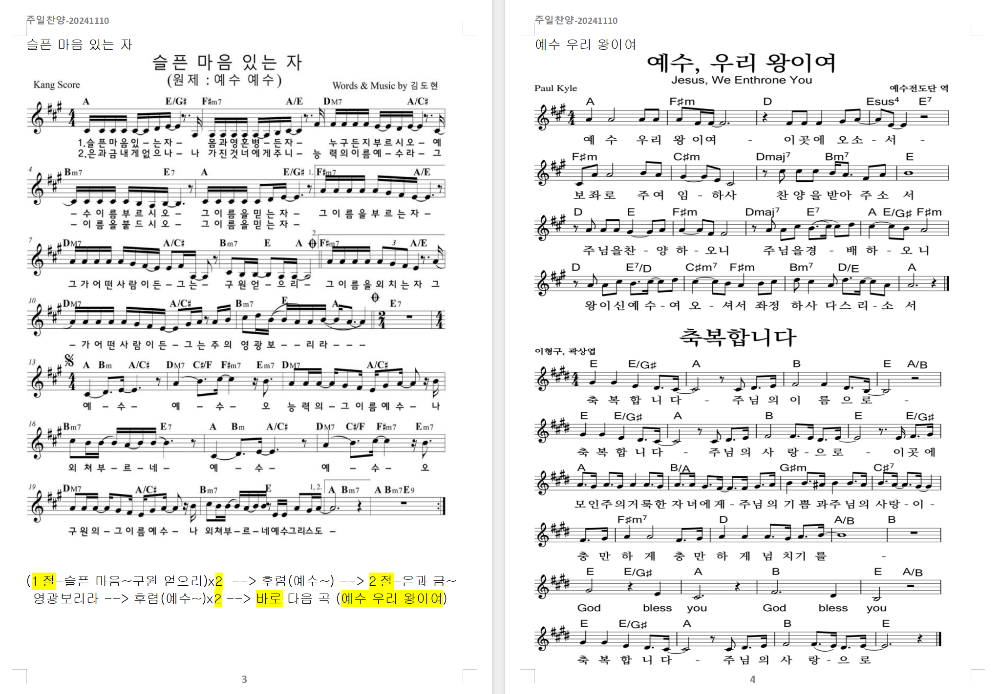 2024. 11. 10. 하늘소망교회 주일예배 찬양콘티